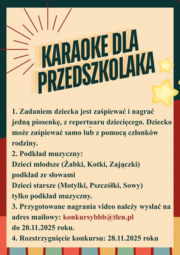 Zapraszamy do wzięcia udziału w konkursie wokalnym “Karaoke dla Przedszkolaka” Regulamin konkursu