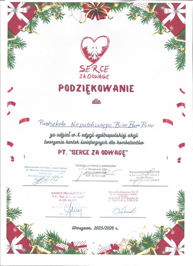 Wewnątrz kartek wkleiliśmy życzenia świąteczne i umieściliśmy logo naszego przedszkola, czyli dzwoneczki Bim Bam Bino;